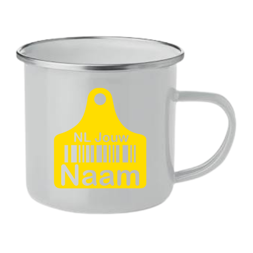 Met deze gepersonaliseerde emaille mok heb je altijd je eigen stoere mok bij de hand. Kies je kleur, laat je naam of nummer op het oorlabel drukken en geniet van koffie, thee of chocolademelk uit een mok die helemaal van jou is. Duurzaam, oersterk en perfect voor elke boer of boerin.